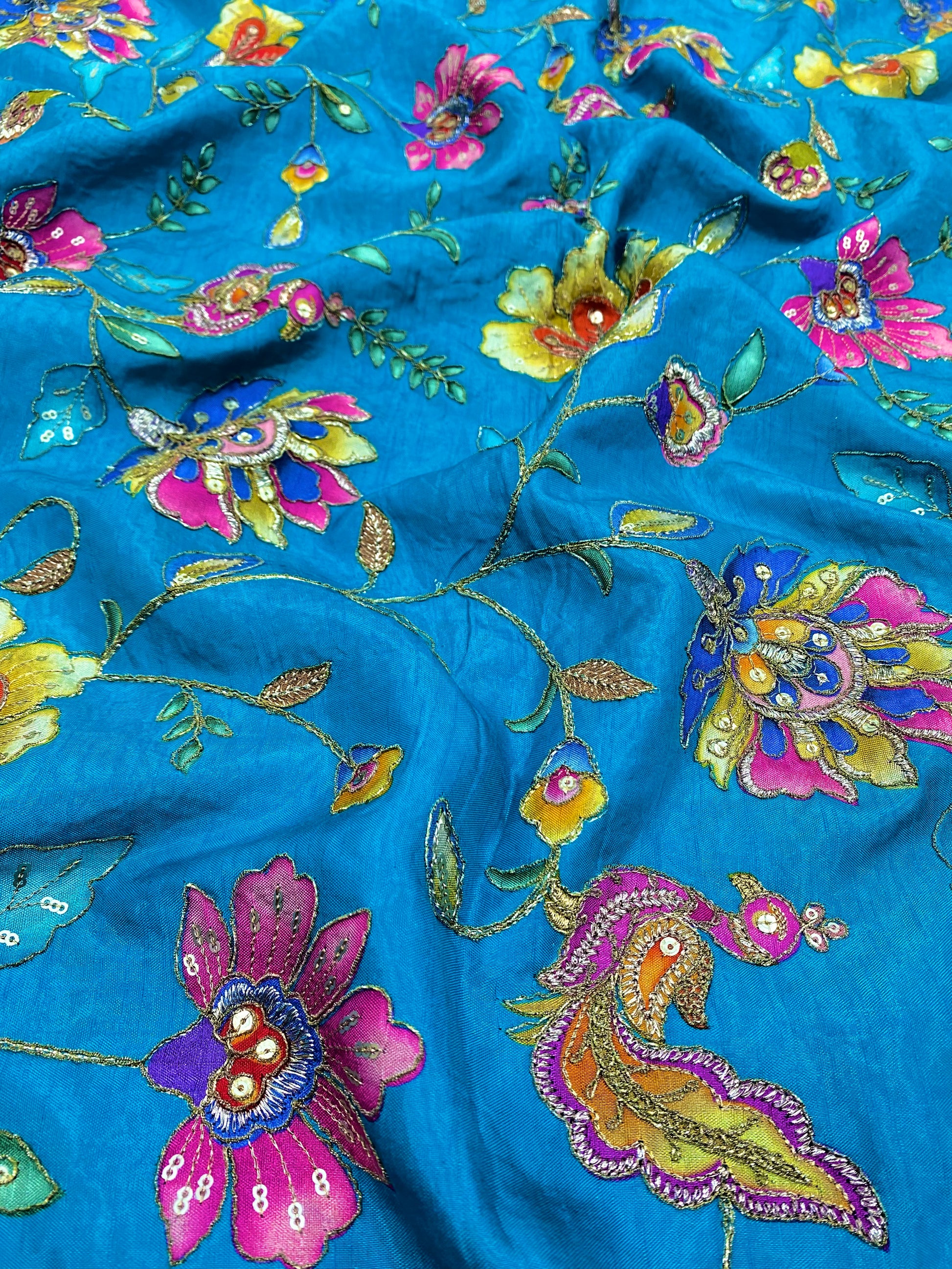 Fabric: Dola Silk Embroidery With Digital Print Fabric