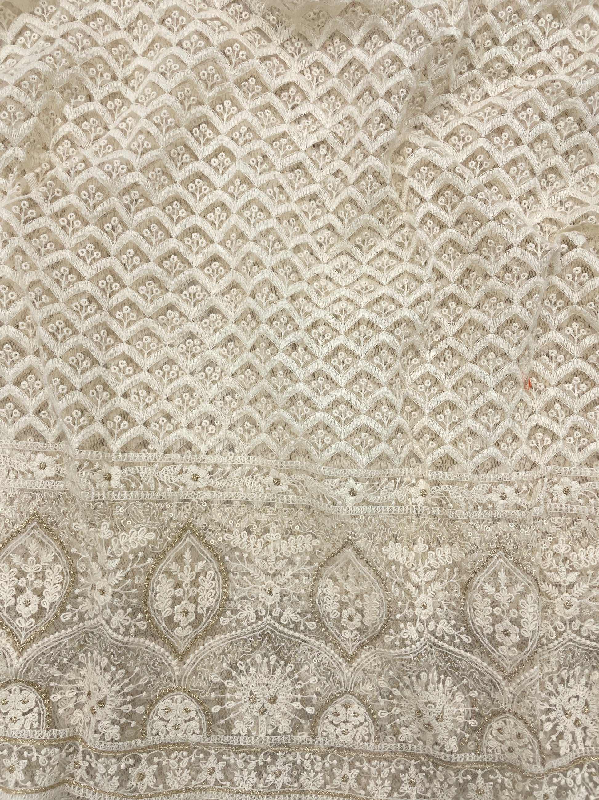 Fabric: Dyeable Net Lucknowi Embroidery Fabric.