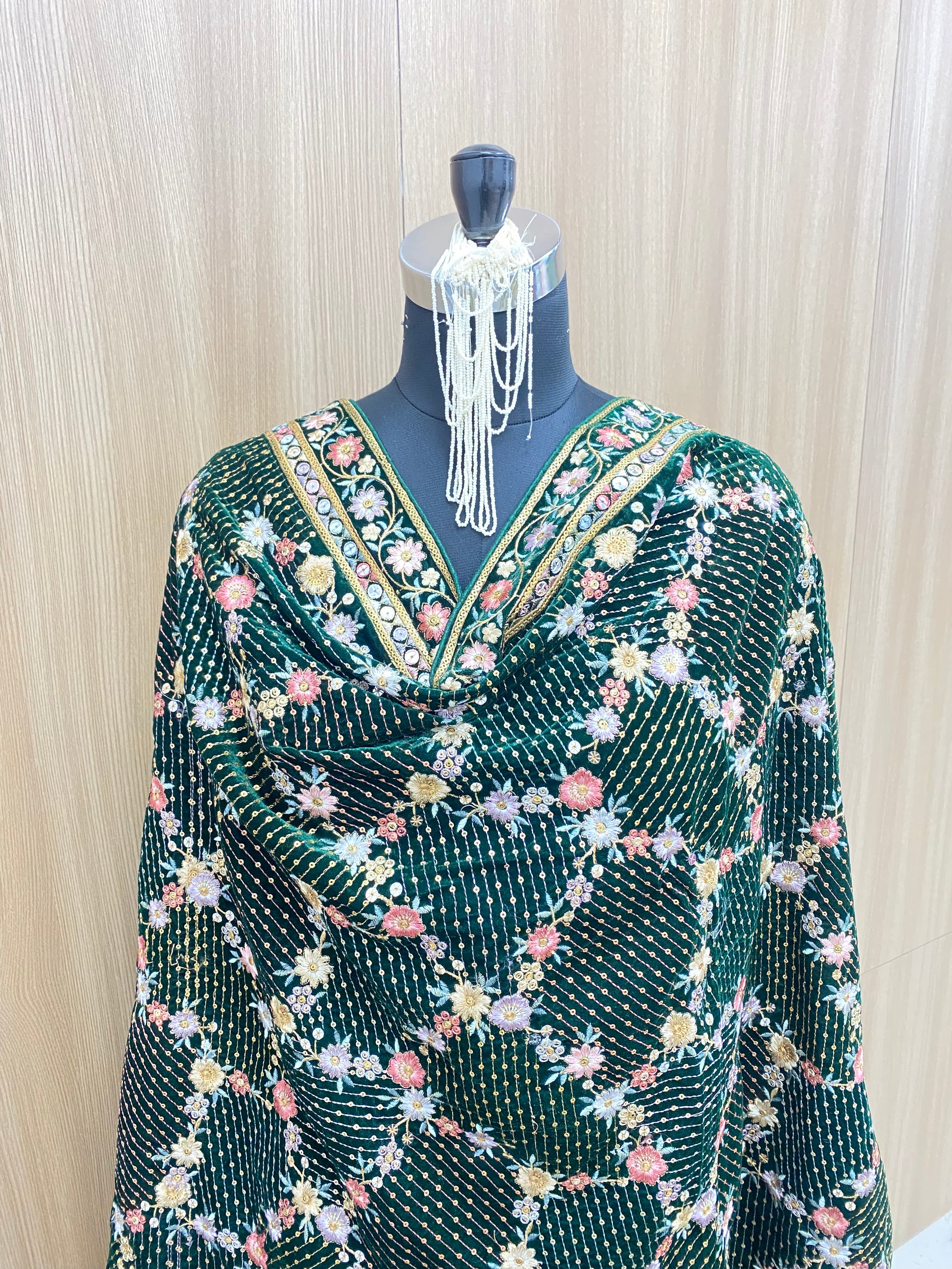 A beautiful dupatta in crafted in velvet fabric which is extremely soft to touch and royal in looks. An exquisite definition of ethnic elegance is this regal dupatta adorning stunning embroidery in beautiful hues.