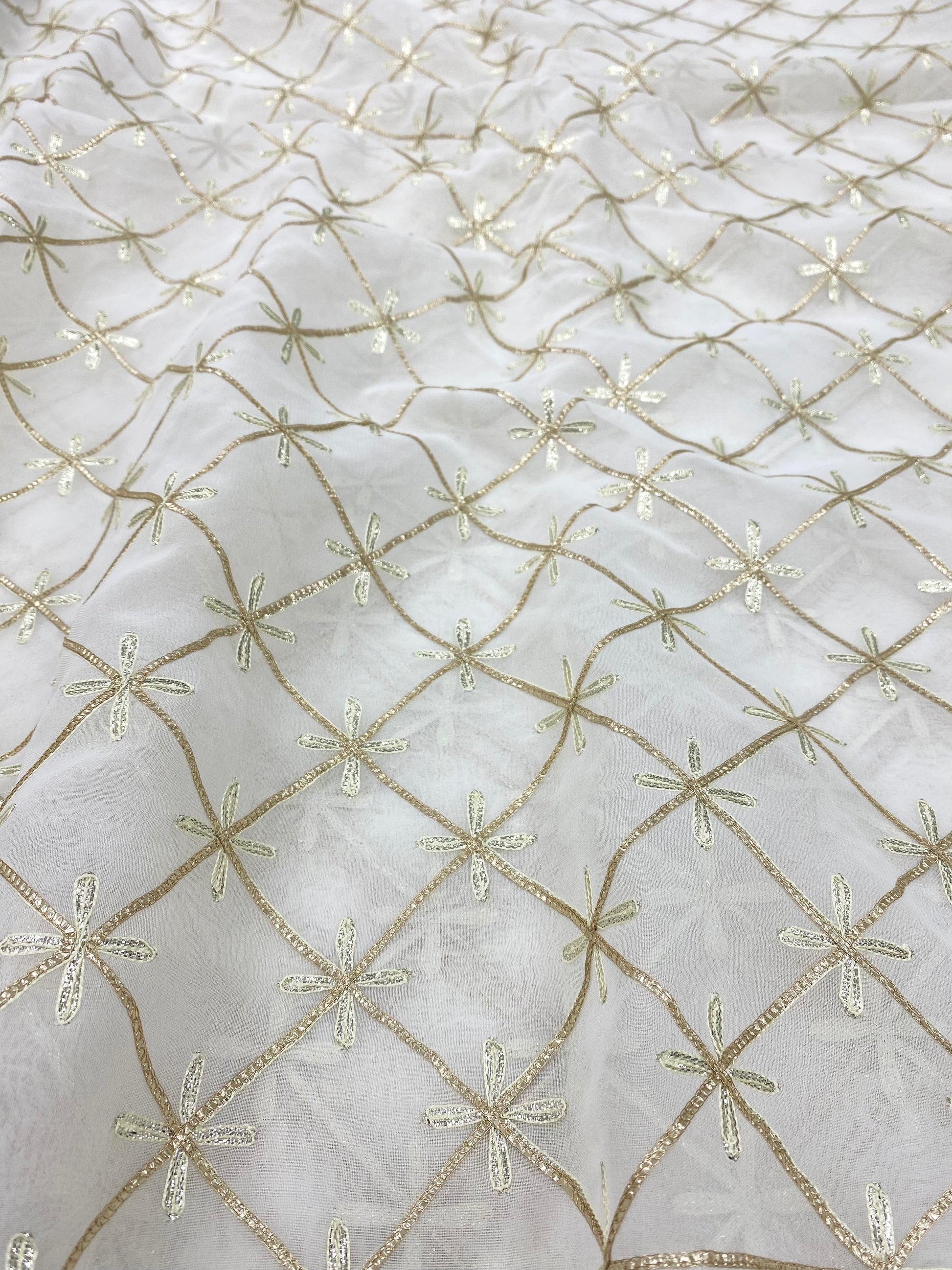 Fabric: Dyeable Georgette Gotta Work Embroidery Fabric.