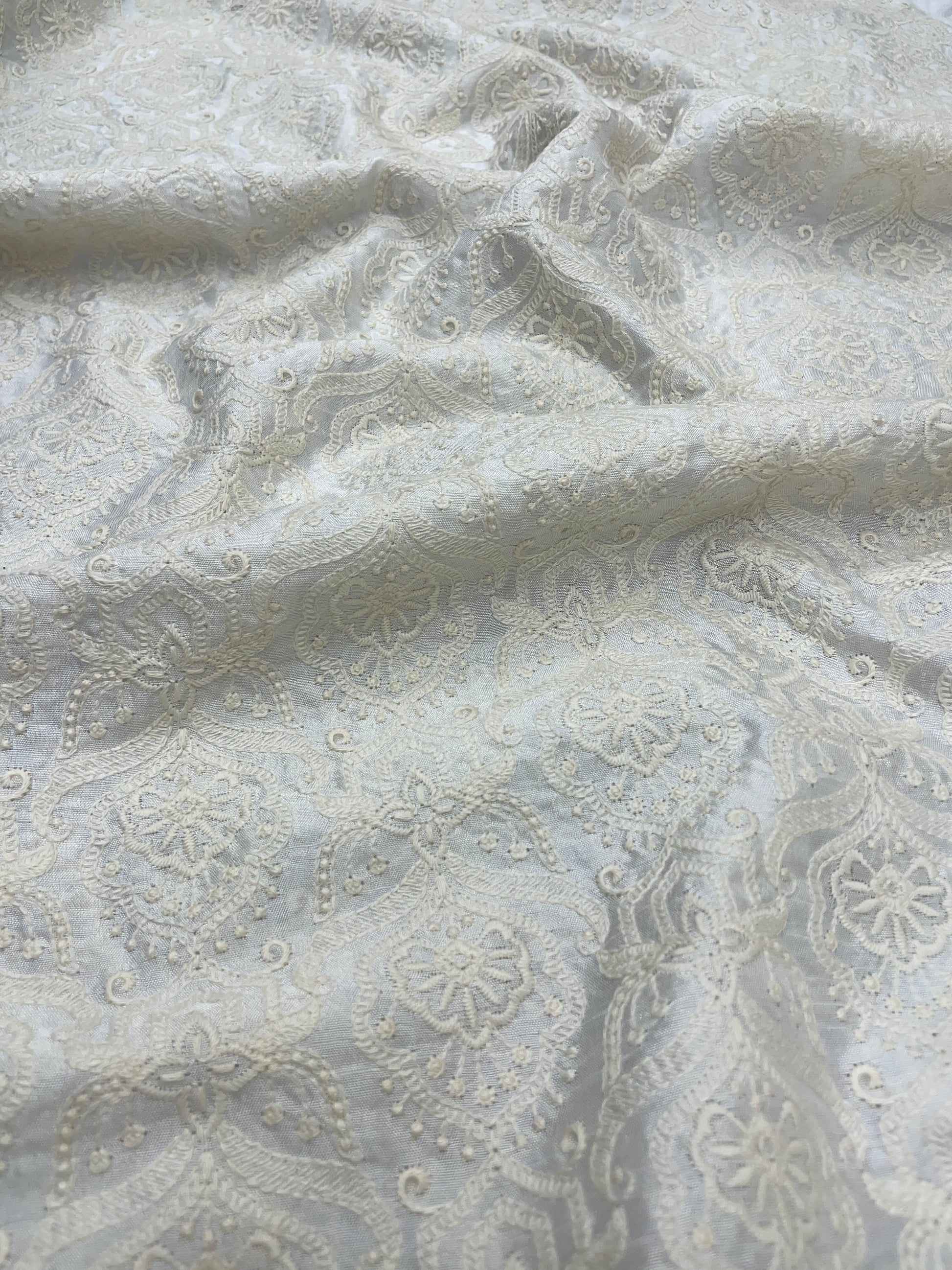- The pure white base allows for easy customization, making it a super Beautiful Jacquard Weave on White Dyeable Mysore Silk Fabric for dyeing in any color of your preference.