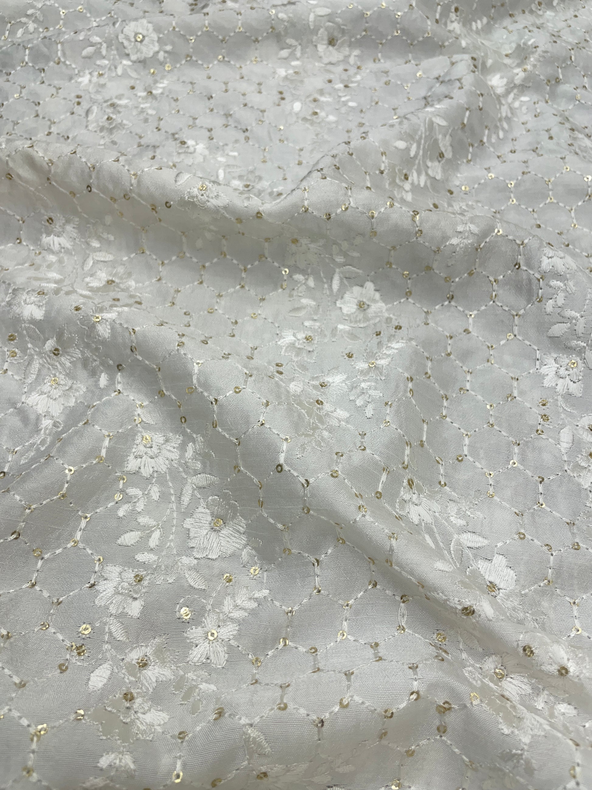 - The pure white base allows for easy customization, making it a super Beautiful Jacquard Weave on White Dyeable Mysore Silk Fabric for dyeing in any color of your preference.