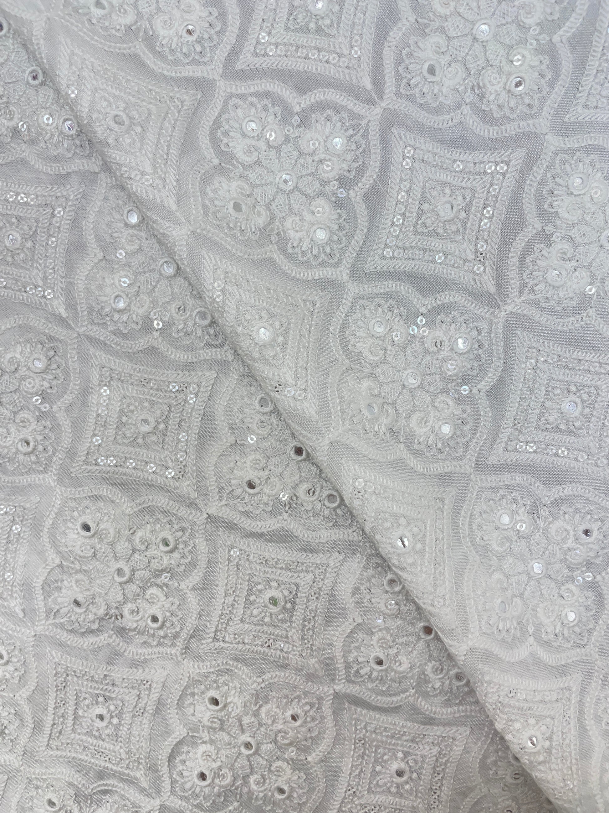 - The pure white base allows for easy customization, making it a super Beautiful Jacquard Weave on White Dyeable Mysore Silk Fabric for dyeing in any color of your preference.
