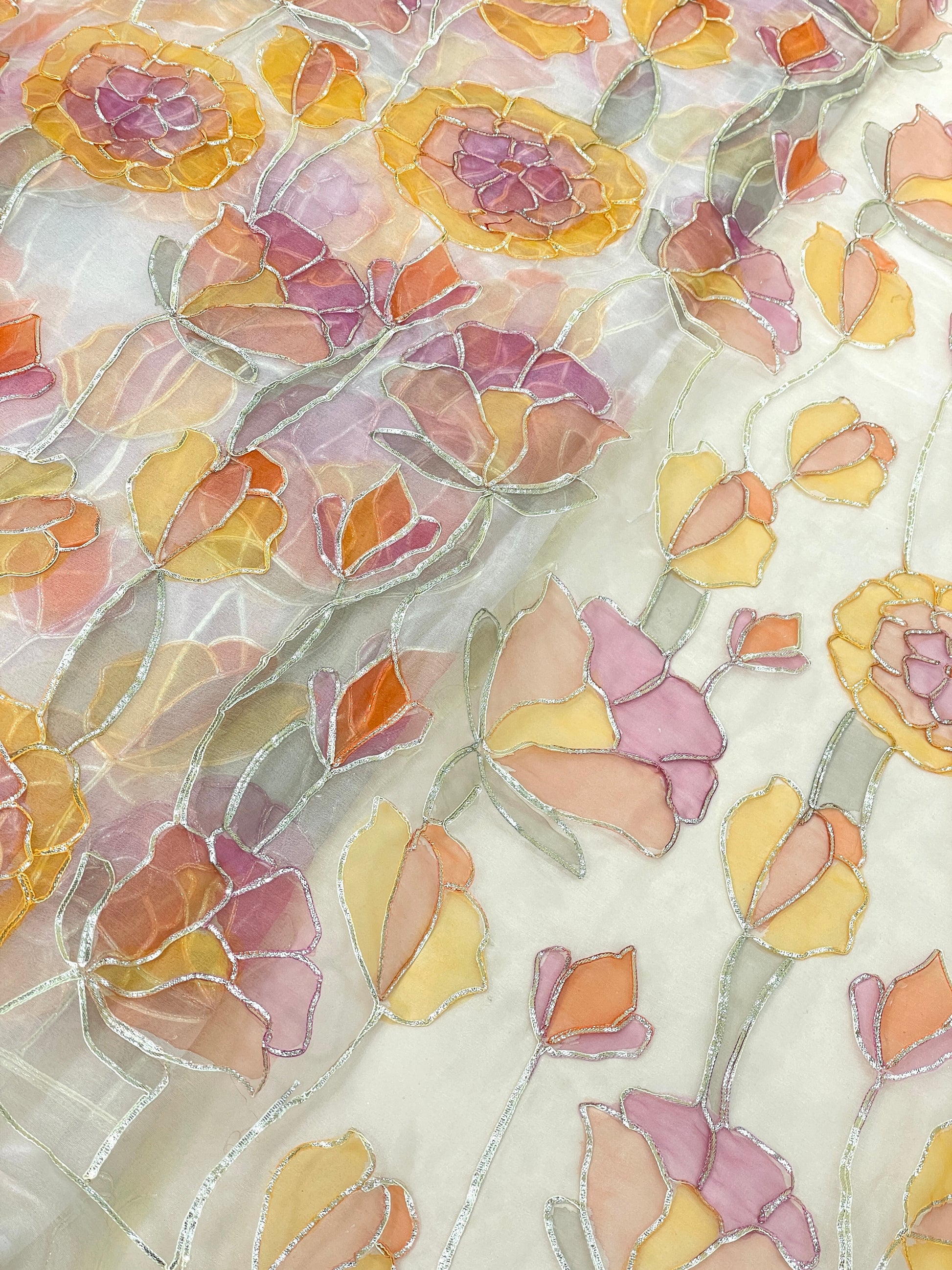 Fabric: Organza Hand Paint With Gotta Embroidery