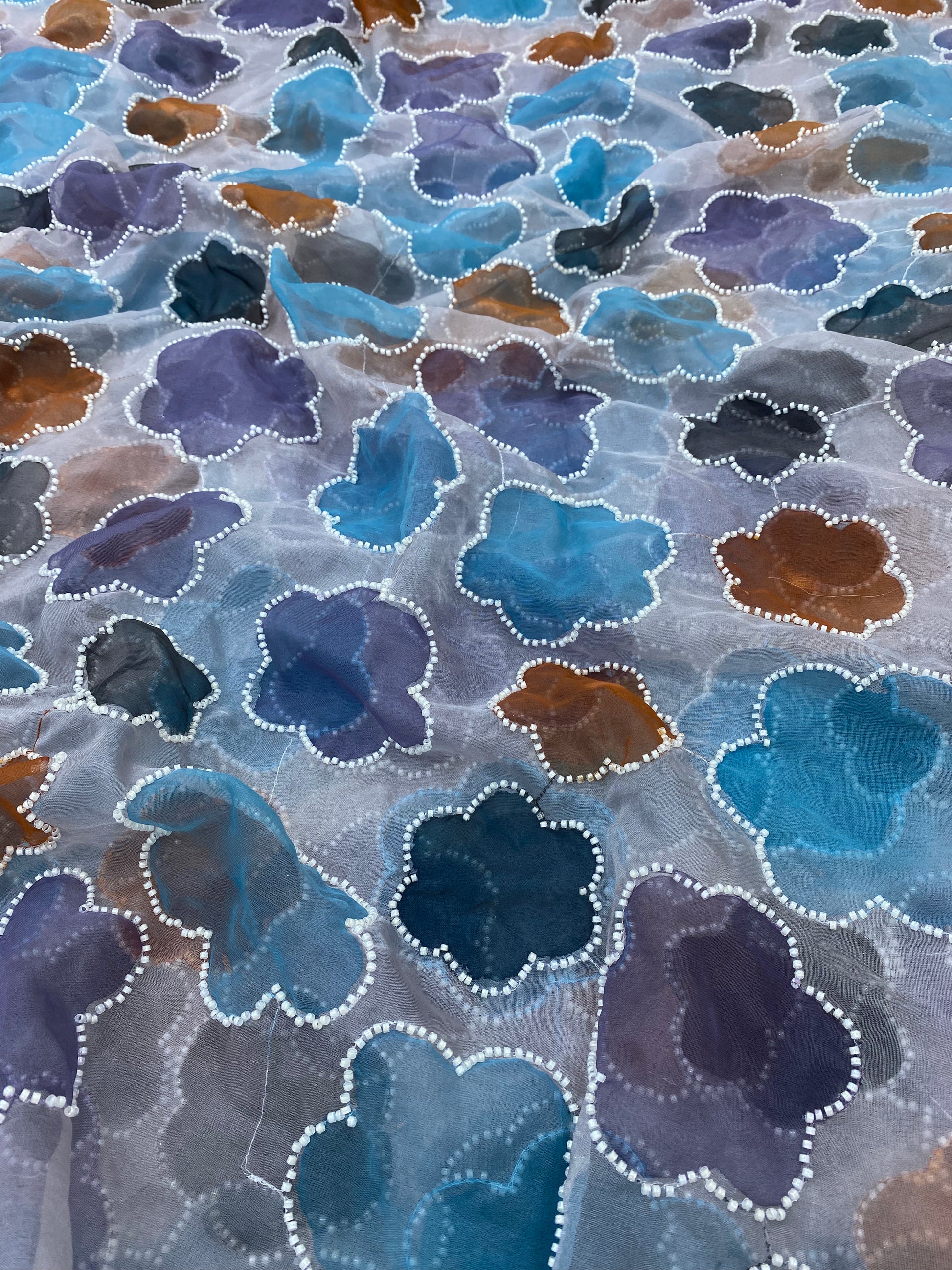 Fabric: Organza HandBrush Paint With Hand Pearl Work