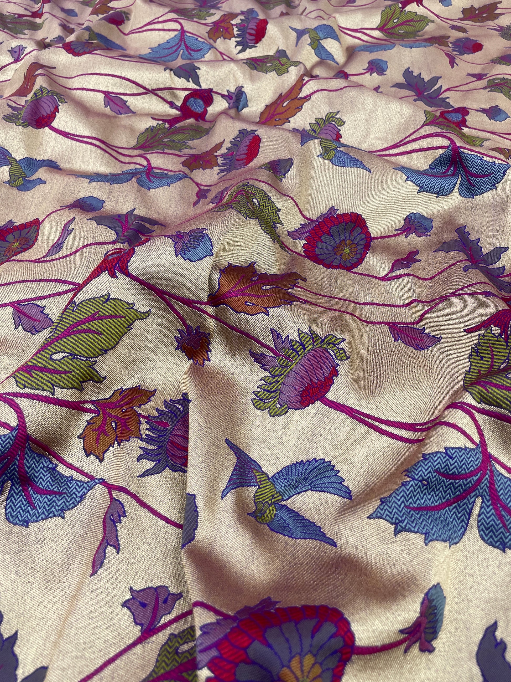 We offer our customers a wide range of fine quality Handloom Kimkhwab fabrics-brocades. These are available in a number of varieties and attractive designs. Owing to their suitability to elegant, formal as well casual decors, these are extensively used by our customers in making of garments, Fancy Designer Dresses, Bridal Wear, Textiles Home Furnishing Items , décor and accessories, such as ladies hand bags and other accessories