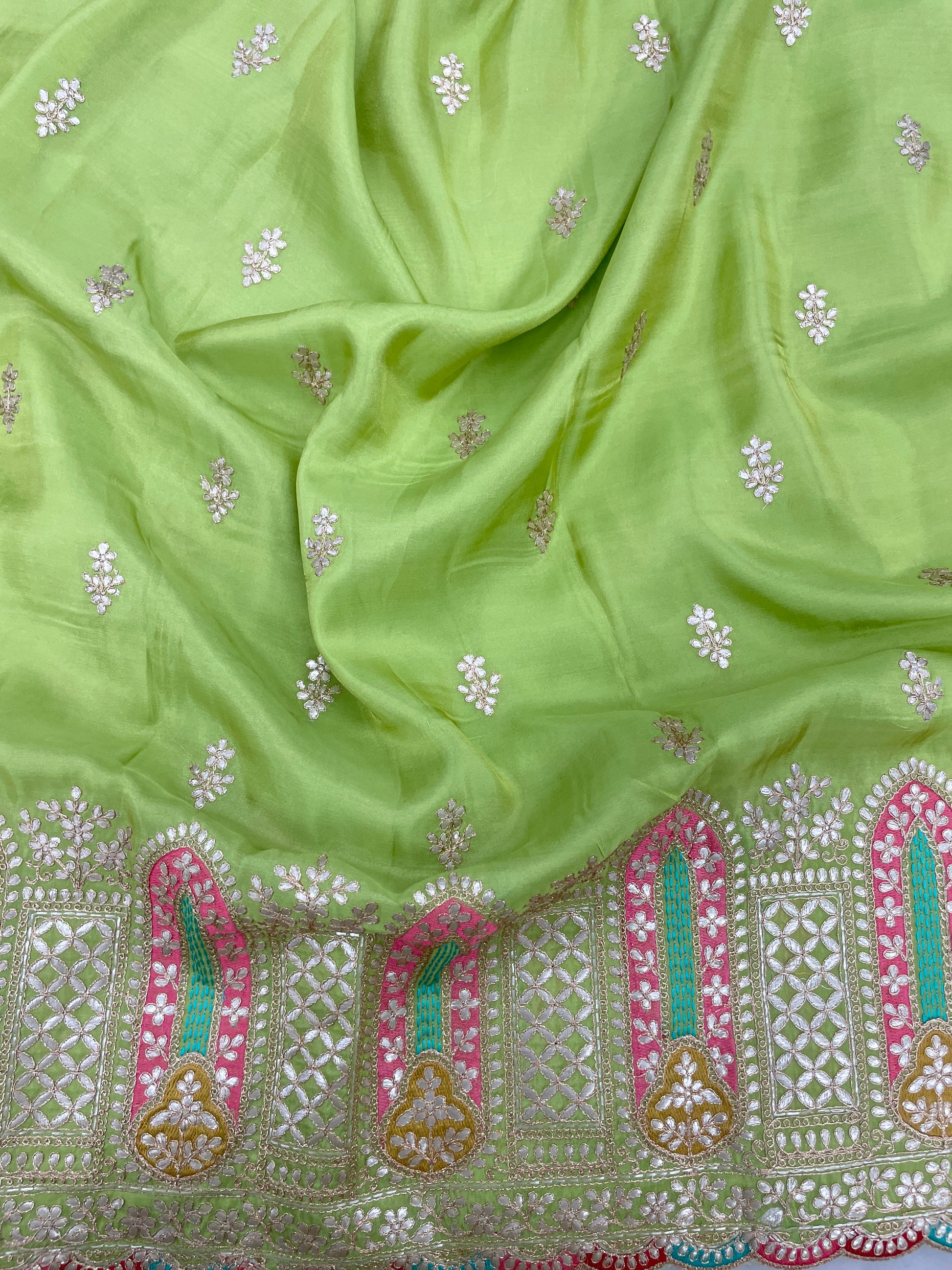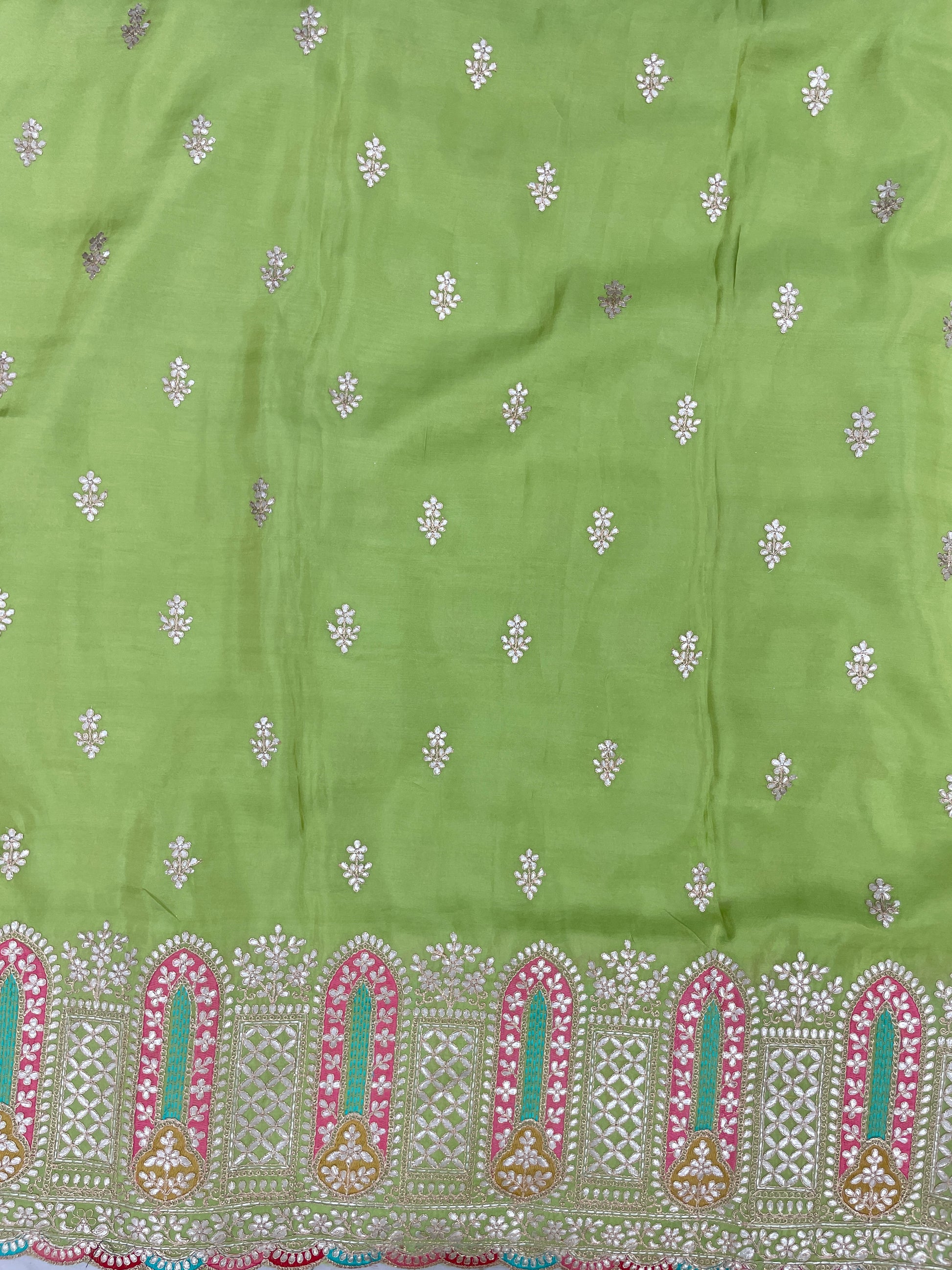 Perfect Wonderful Luxurious Traditional Thread Embroidery With Faux Mirror And Zari Work On Tissue Fabric
