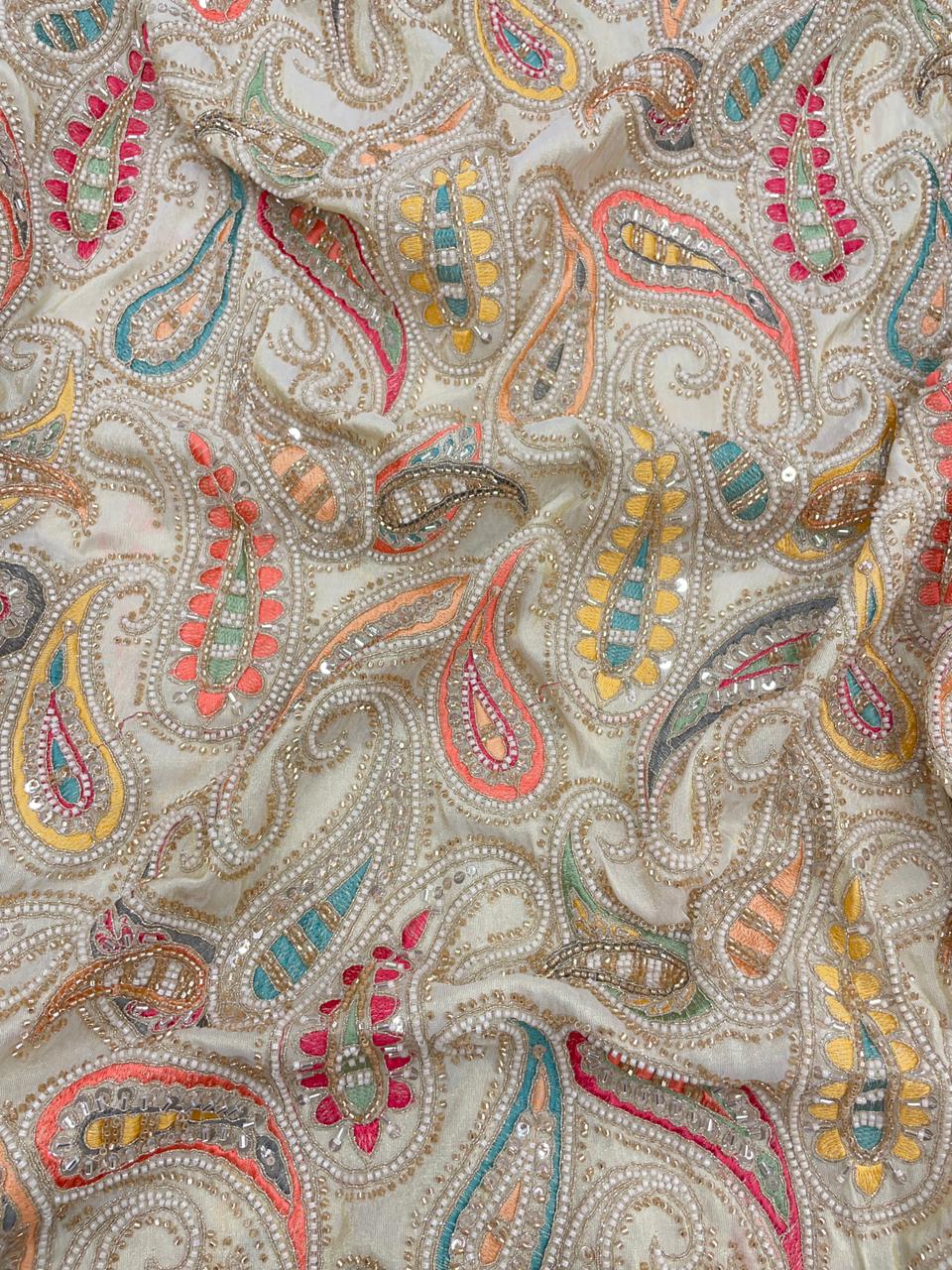 Premium Tissue Multicolor Beads Embroidery fabric