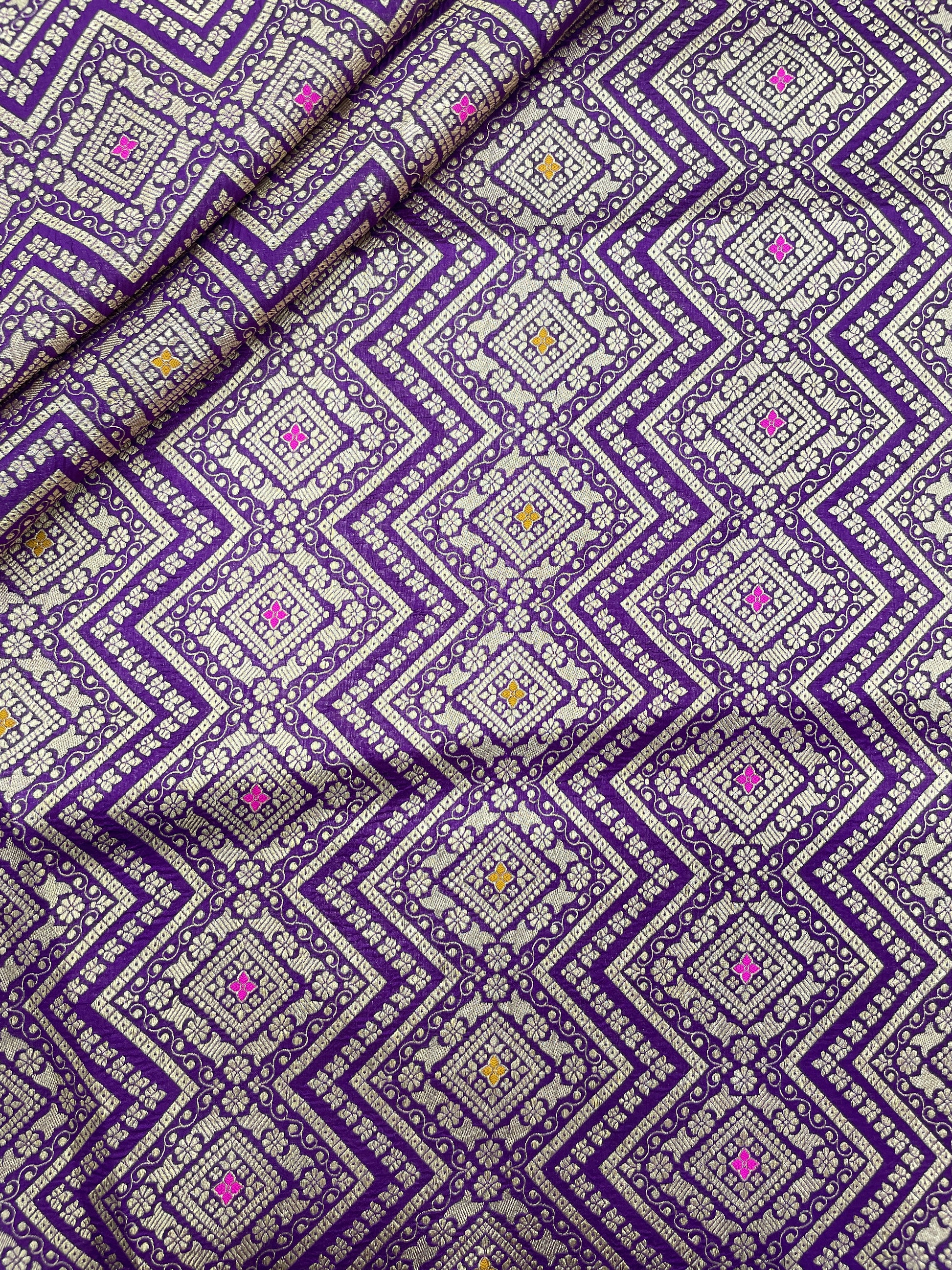 - Each piece of Minimal Golden Zari Weaving on Multicolor Banarasi Brocade Fabric is meticulously crafted using the use of professional artisans who deliver generations of know-how to weaving.