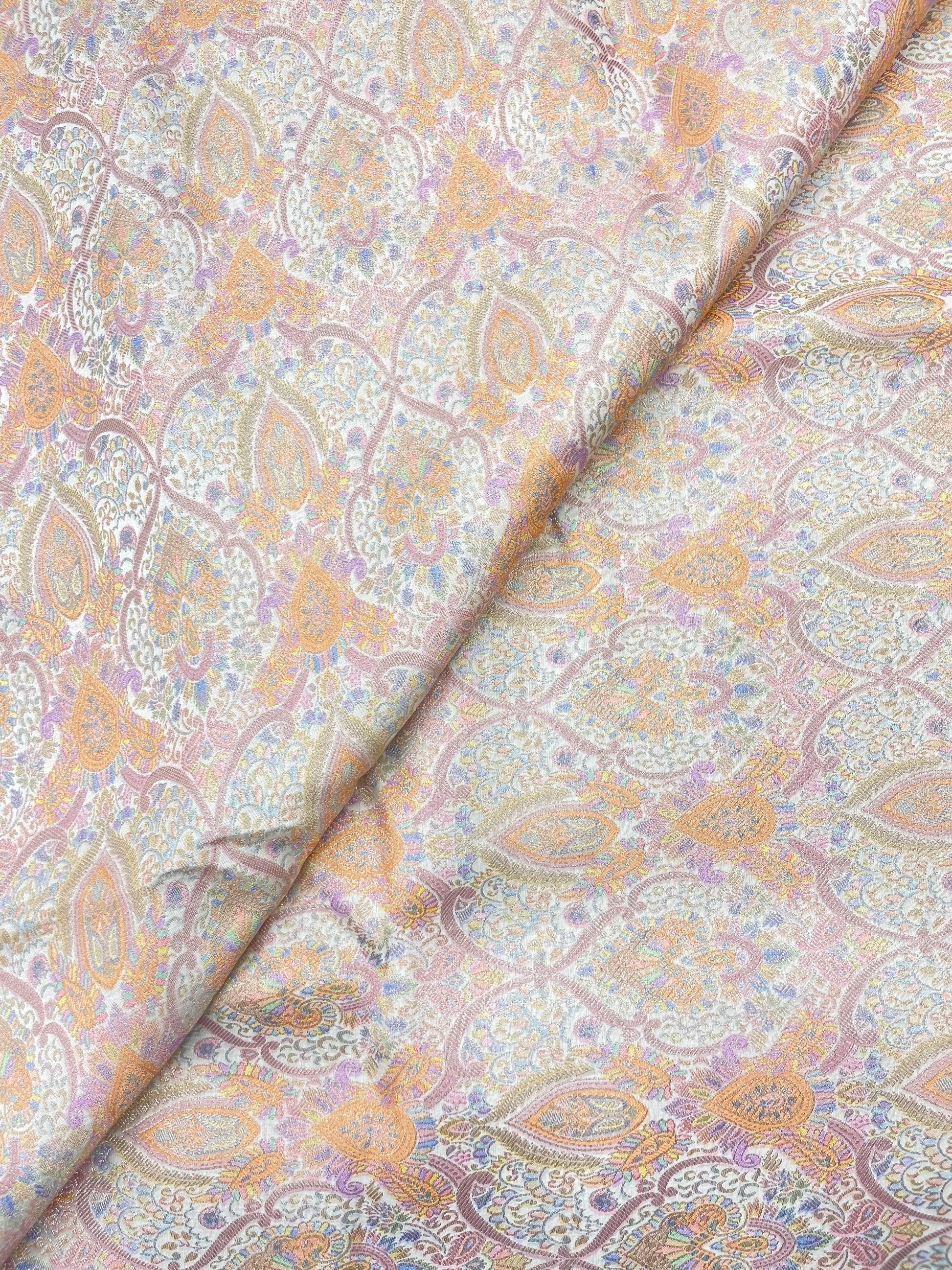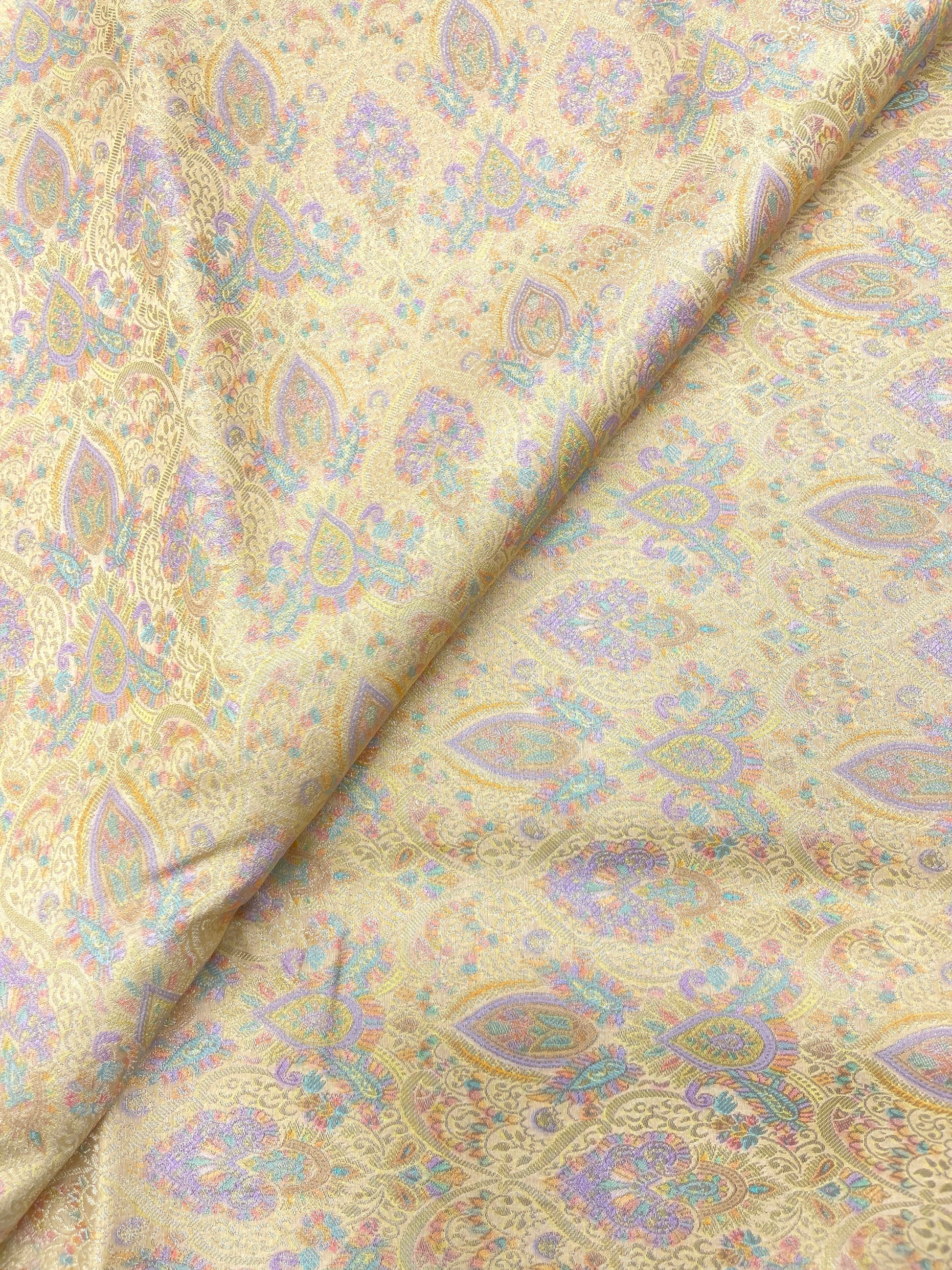 - Each piece of Minimal Golden Zari Weaving on Multicolor Banarasi Brocade Fabric is meticulously crafted using the use of professional artisans who deliver generations of know-how to weaving.