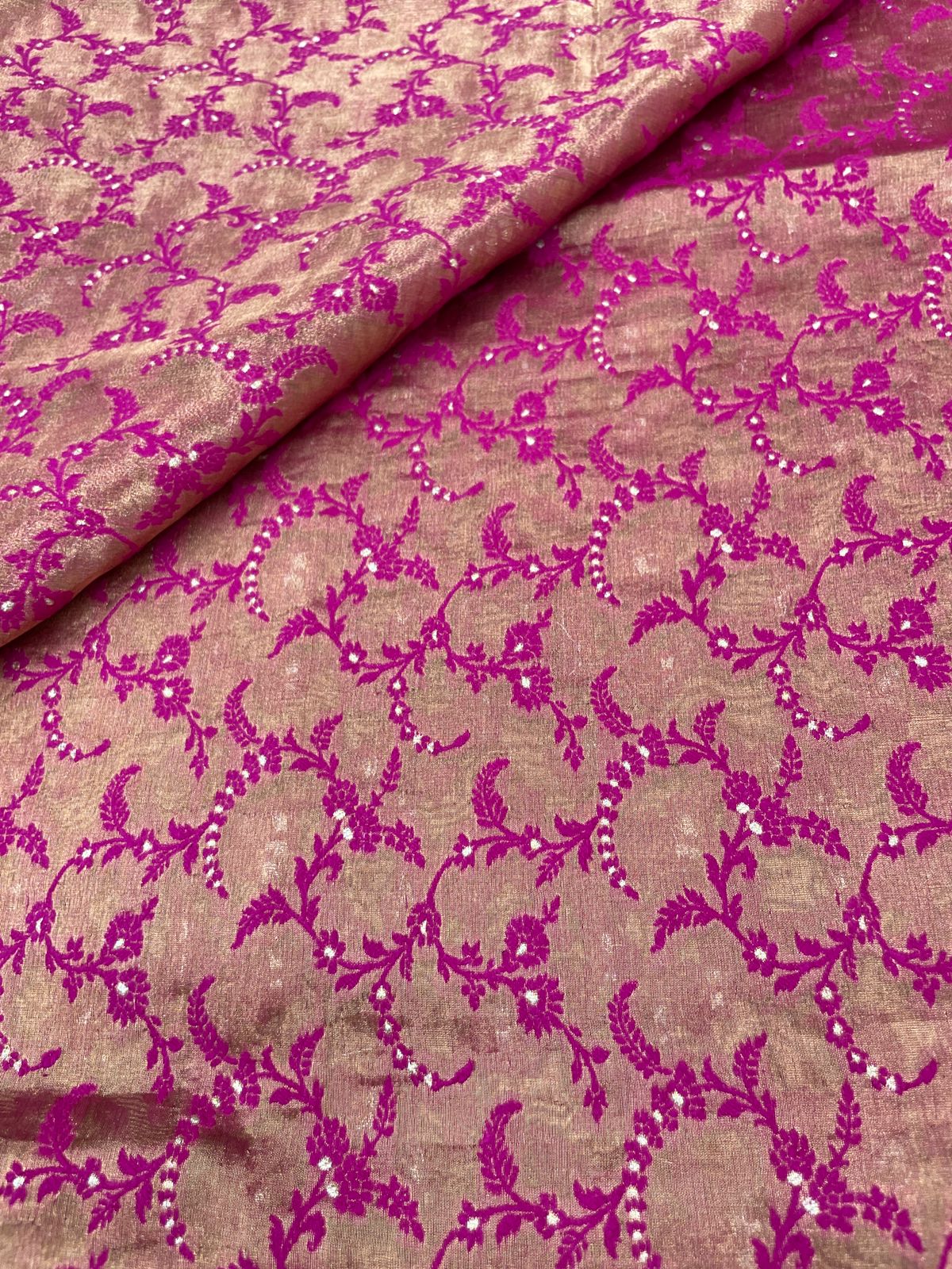 - Intricate Patterns: Often adorned with zari motifs, jacquard weaves, or embroidery, silk tissue fabric showcases a blend of artistry and tradition.