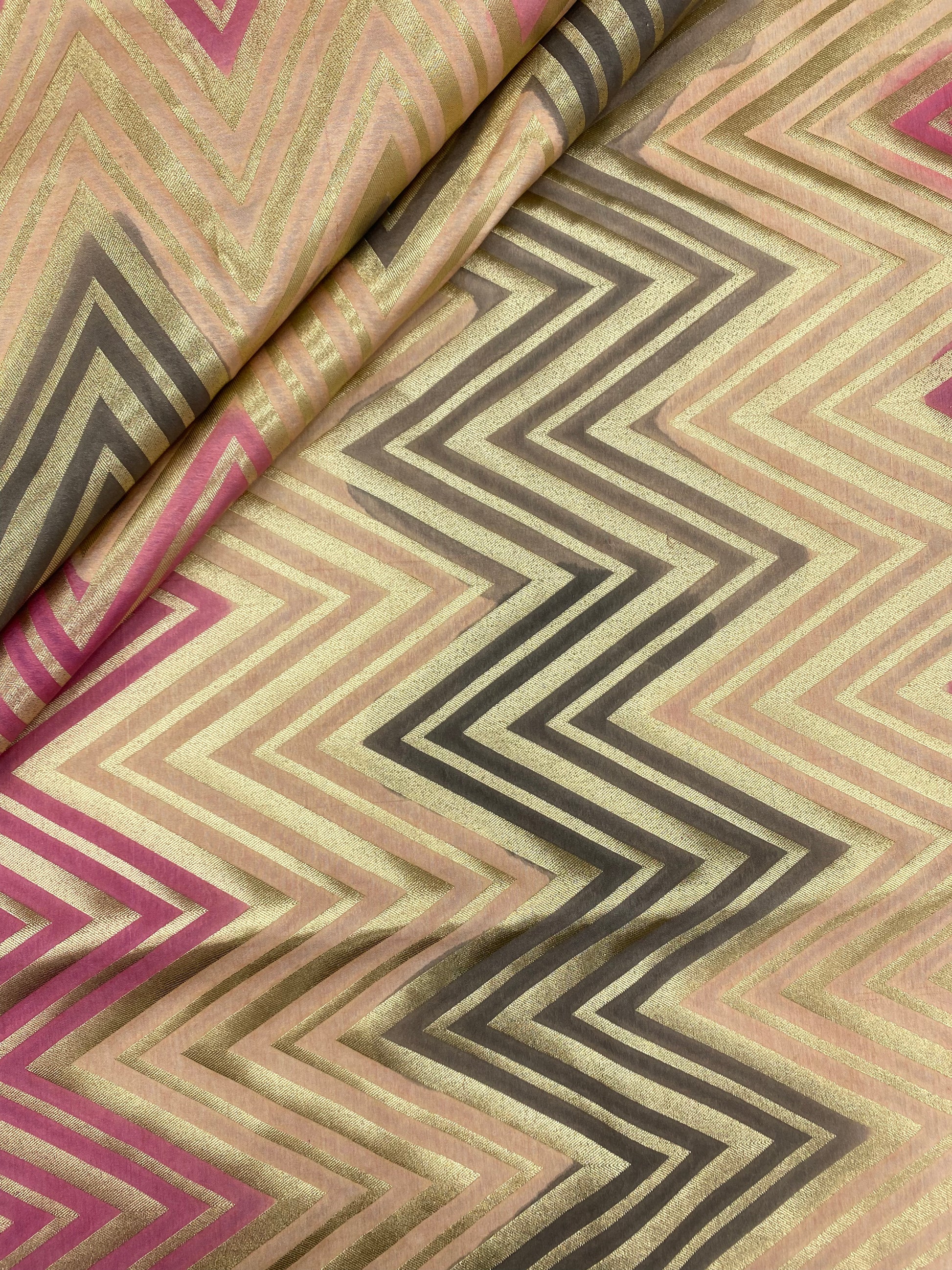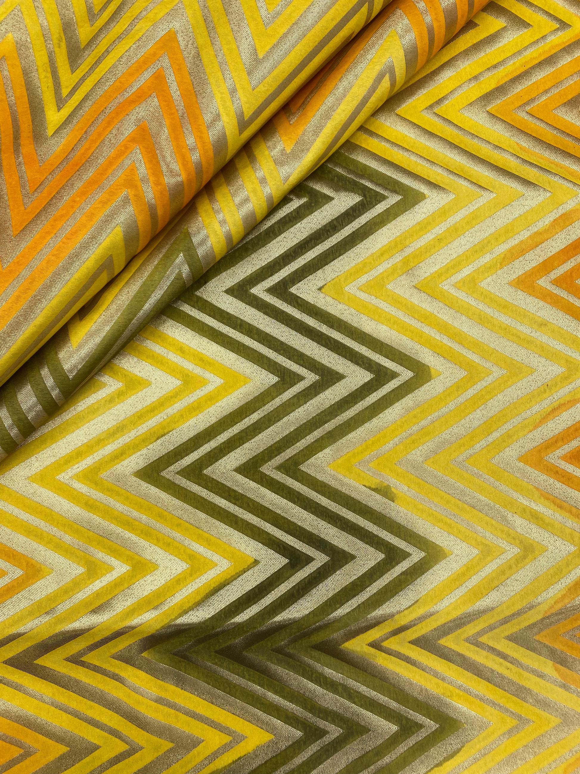 - Discover the diffused beauty of Minimal Golden Zari Weaving on Multicolor Banarasi Brocade Fabric, a one-of-a-kind introduction that uses Banaraswala Fabrics.