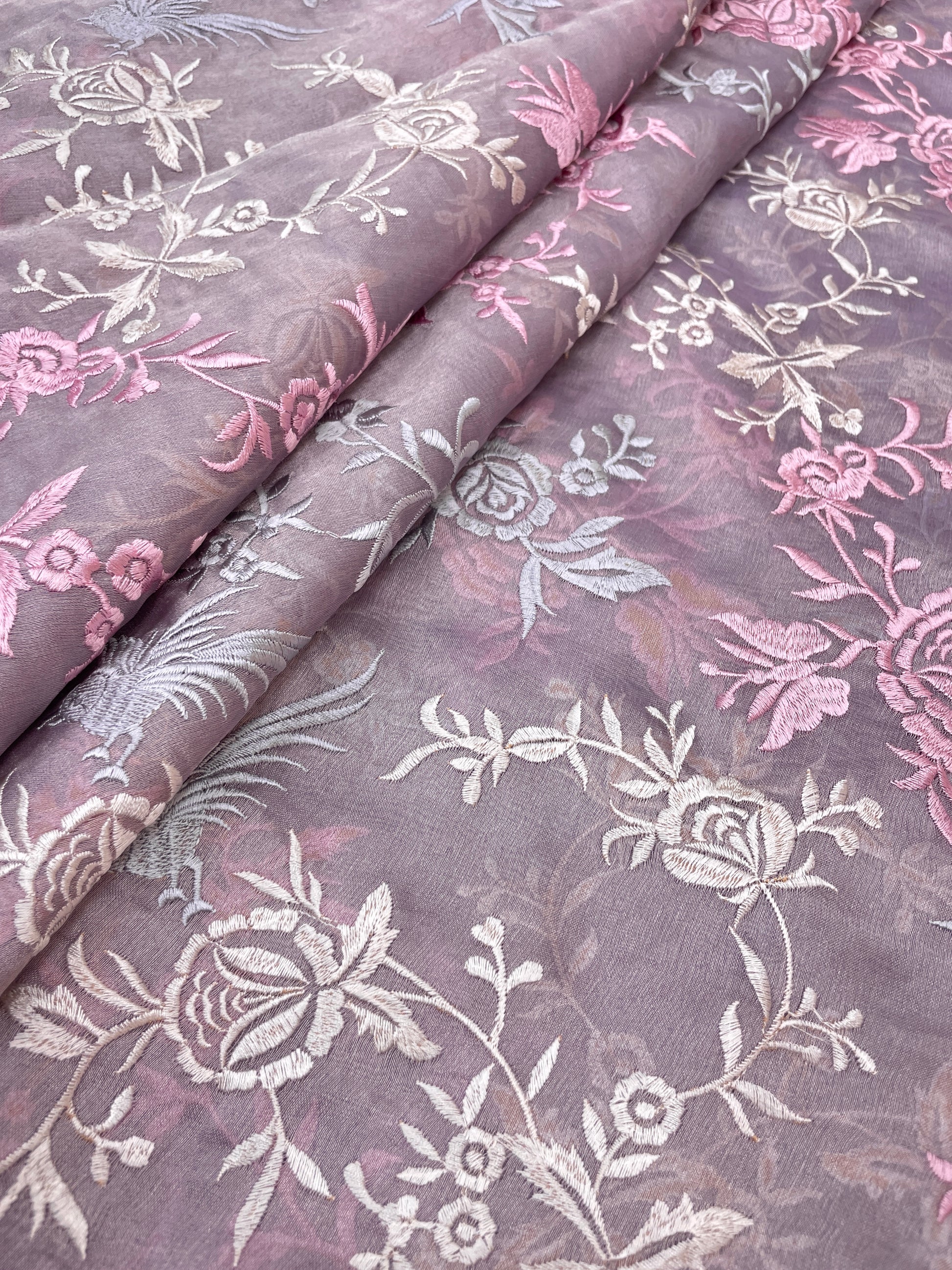 Superb Pleasant Colorful Floral Thread Embroidery On Pure Tissue Fabric