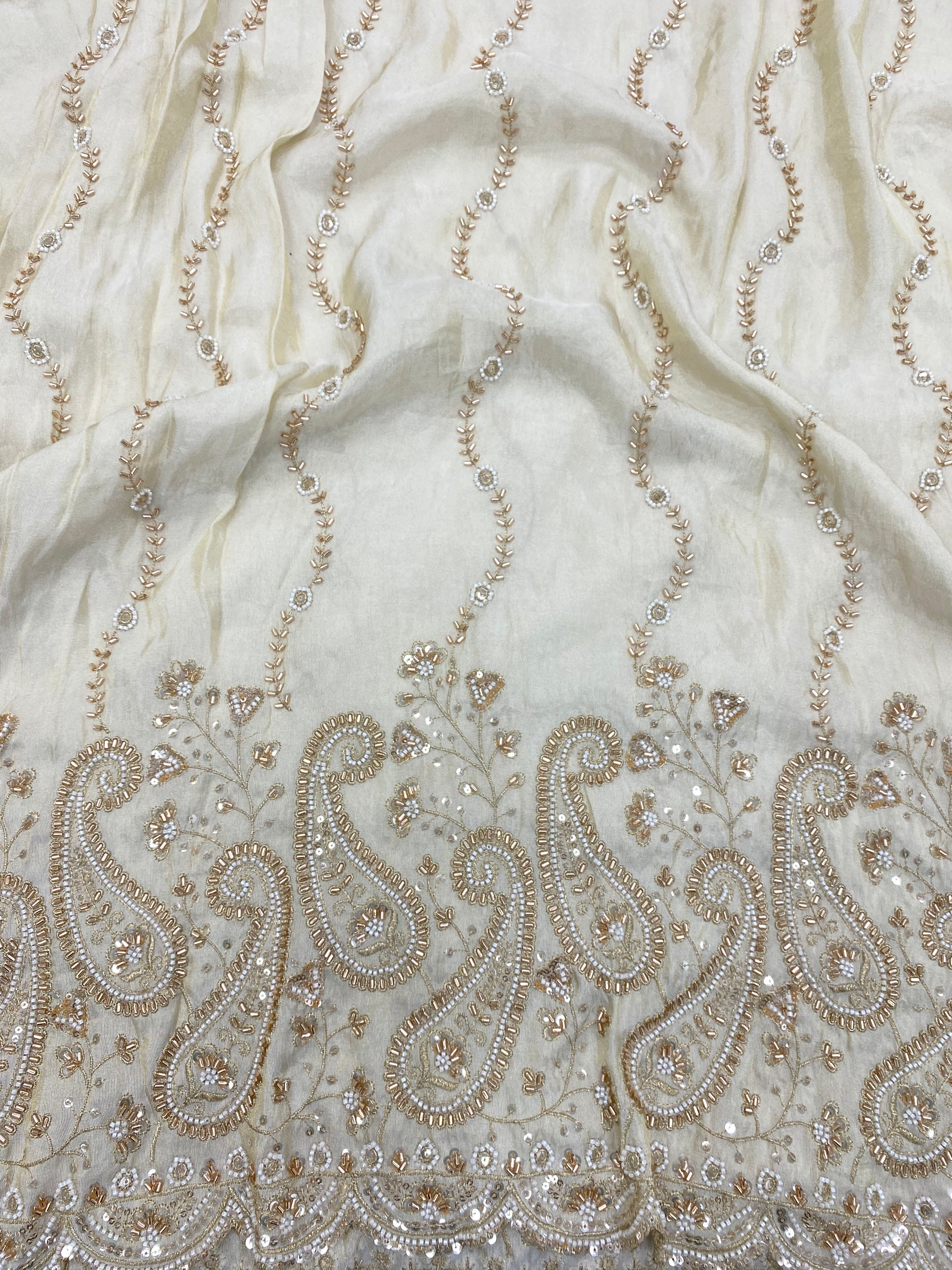 Tissue Fabrics are manufactured by weaving Zari into the fabric's structural weft and any yarn into the warp to create tissue cloth.