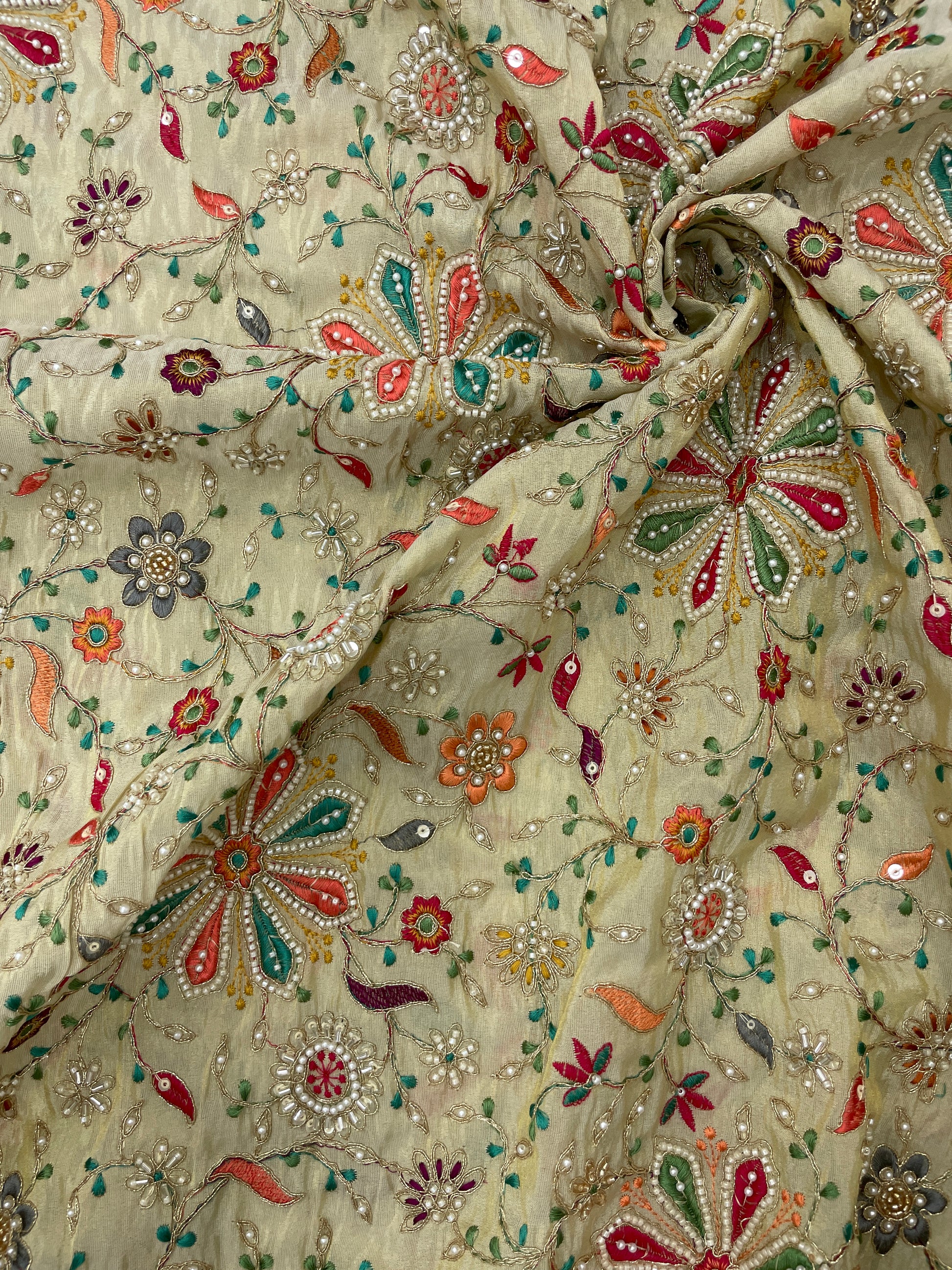 Tissue Fabrics are manufactured by weaving Zari into the fabric's structural weft and any yarn into the warp to create tissue cloth.