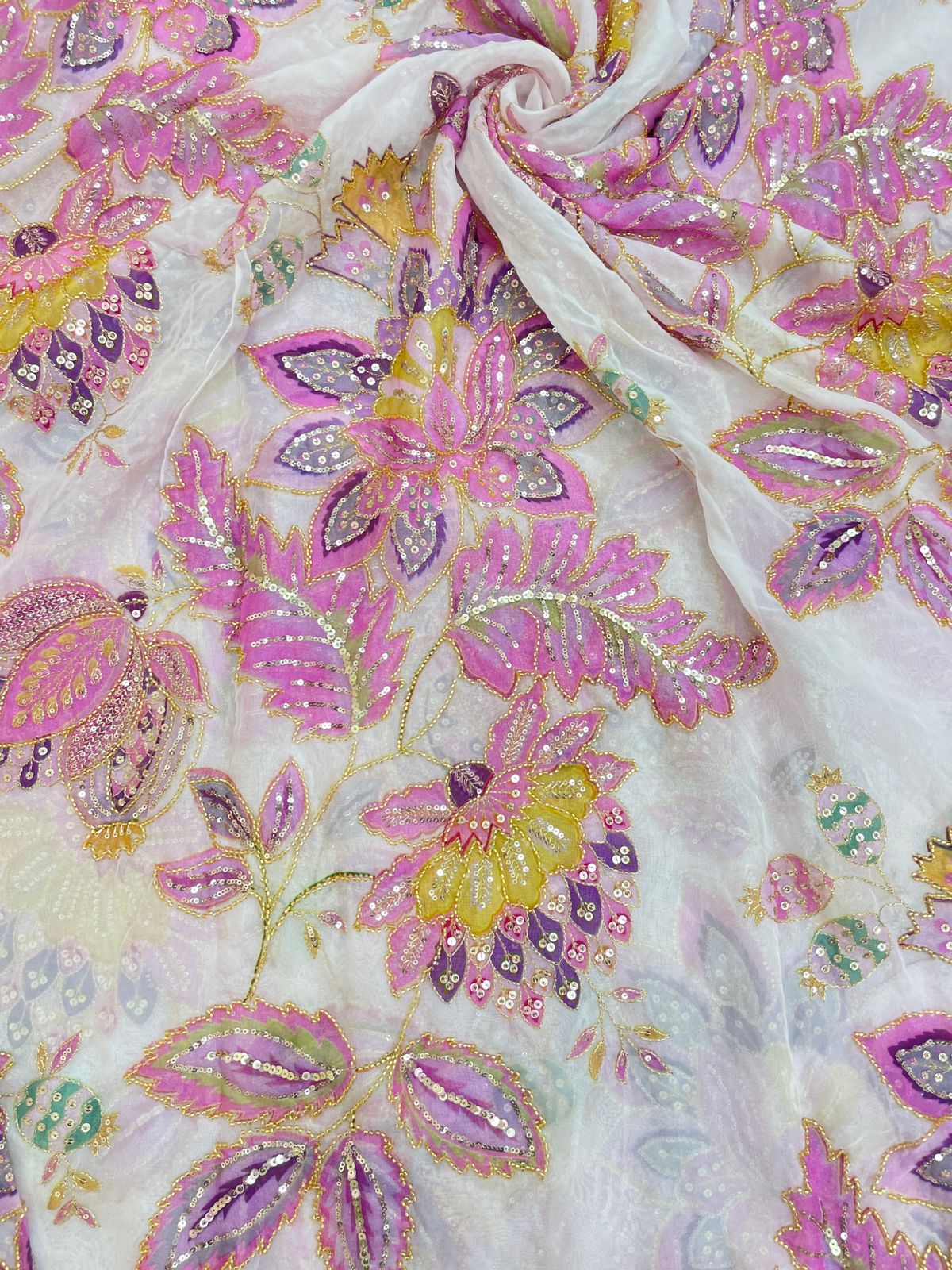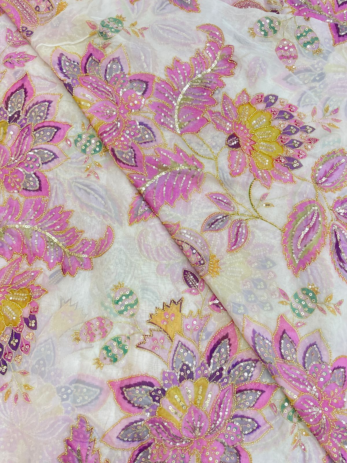 Fabric: Viscose Organza Print With Embroidery Fabric